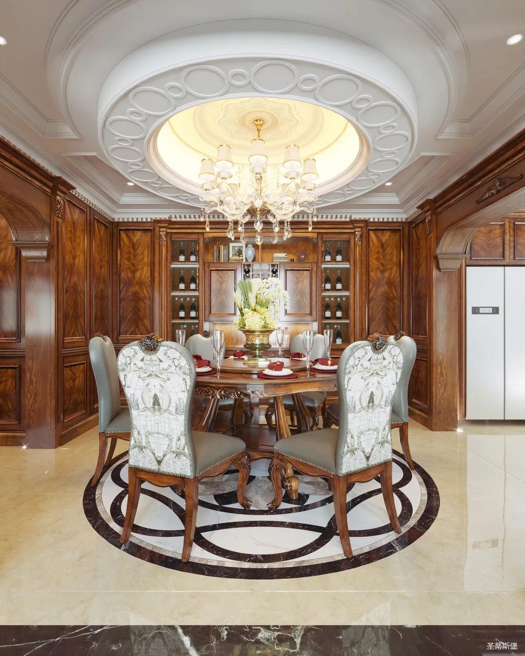 女业主是留美归来,非常喜欢美式用餐氛围,设计师以怀旧雅致作为室内基调,整体定制柜与护墙,都透着美式的自然怀旧,即使褪去家具软装,仅存留硬体结构,仍透散着优雅纯净的美式韵味。
